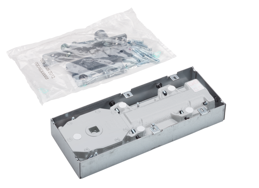 - Монтаж не доставит сложностей, потому что в доводчике есть взаимозаменяемые шпиндели, которые позволяют настроить зазор между створкой и полом и неглубокий цементный короб, всего 40 мм. Регулировки в корпусе доводчика относительно уровня пола позволяют настроить положение доводчика в пределах 6- 9 мм.