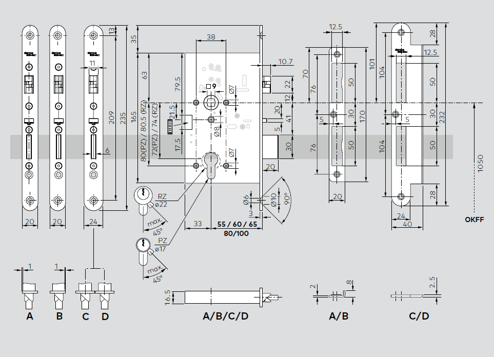 | Тип запирания | Двухточечное, прямым ригелем и ригелем двойного действия |