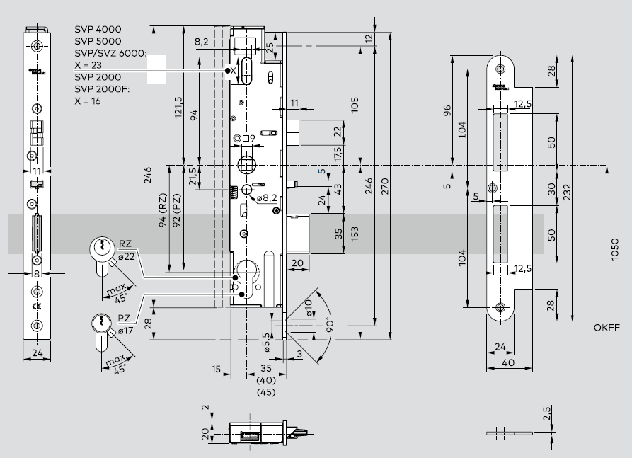 | Тип запирания | Двухточечное: прямой ригель и ригель двойного действия |