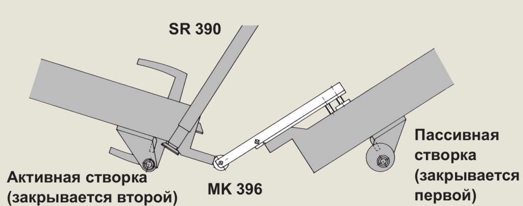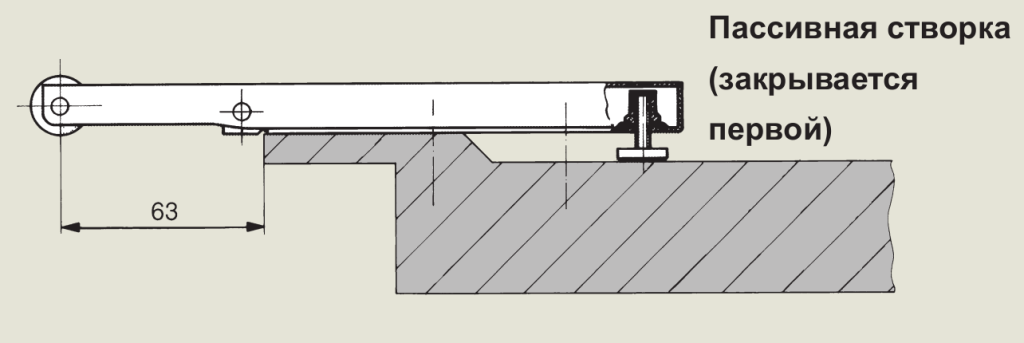 When an attempt is made to open the passive leaf of a double-leaf door first, the carry bar, installed on the passive leaf, will reliably push the active leaf forward (for example, in the case of emergency exit doors equipped with panic hardware), and the coordinator, in turn, will ensure the correct closing sequence of the leaves.